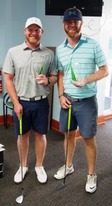 We kicked off the day at 11:00 with a putting contest and lunch sponsored by Milling Commercial Realty. It was perfect golf weather: sunshine with a gentle breeze. Our sponsor tents offered delicious grilled fare, snacks, and drinks along the way, which fostered a wonderfully relaxed, sociable atmosphere. Tournament participants enjoyed a variety of competitions in addition to the 18 holes of golf; there were Longest Putt, Closest to the Pin, and Longest Drive competitions.
